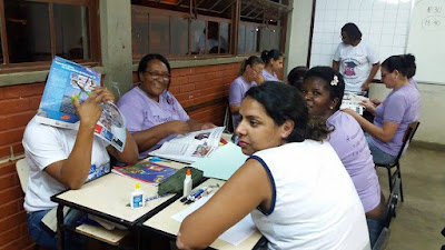 Cada grupo escolheu uma aluna para apresentar para toda as outras o cartaz confeccionado.